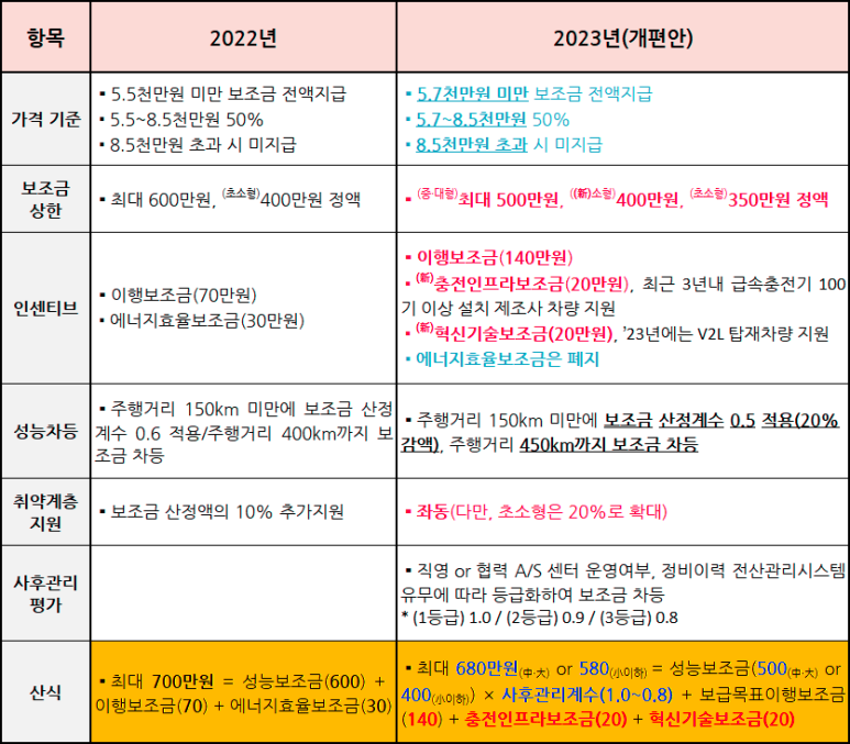 2023년에는 전기차 구매 보조금이 3대 원칙에 따라 개편됐다.